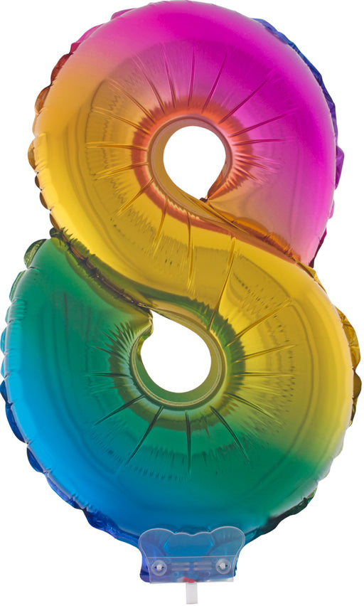 Vollständige Details anzeigenZahlen Folienballon 41 cm mit Stab - Regenbogen Zahl 8