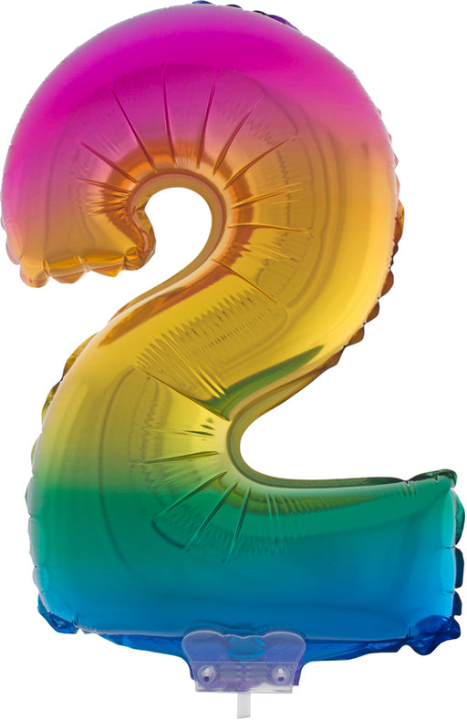 Vollständige Details anzeigenZahlen Folienballon 41 cm mit Stab - Regenbogen Zahl 2
