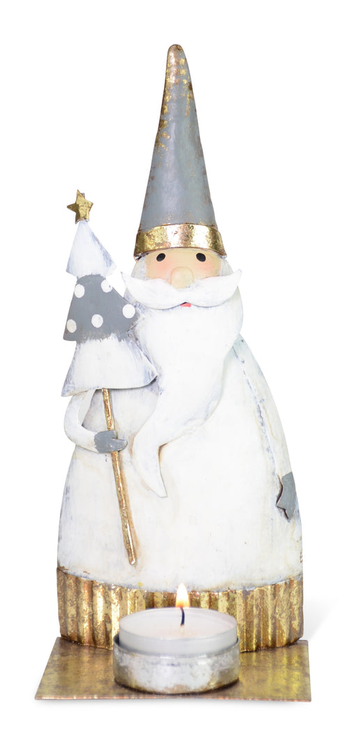 Weihnachtsmann mit Teelichthalter | Metall Grau Weiß Gold | 8,5×20 cm | 18204
