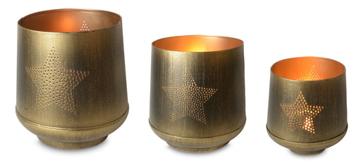 Windlicht Set 3-teilig | Stern & Baum Design | Gold Bronze Metall | 19155