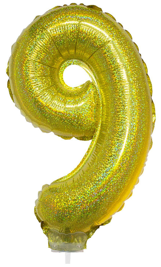 Vollständige Details anzeigenZahlen Folienballon 41 cm mit Stab - Holografisch Gold Zahl 9