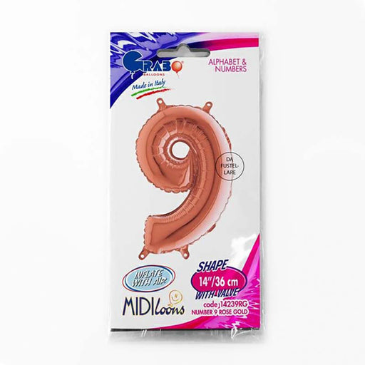 Vollständige Details anzeigenABC Mini Zahlen Folienballon 14"/36cm | Rosegold #9