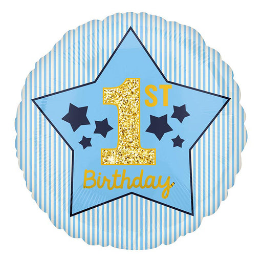Vollständige Details anzeigenABC18 Folienballon "1st Birthday Boy" | Ø 45 cm Blau/Gold