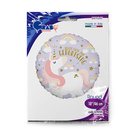 Vollständige Details anzeigenABC18 Folienballon "Alles Gute zum Geburtstag Einhorn" | Ø 46 cm