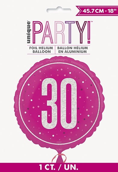 Vollständige Details anzeigenABC18 Folienballon "#30" Glitz | Ø 45 cm Pink