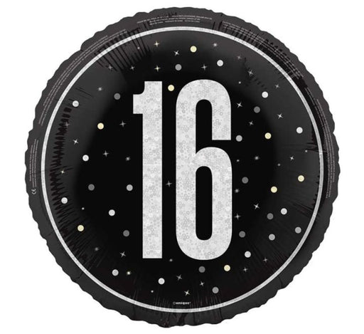 ABC18 Folienballon "#16" Glitz | Ø 45 cm Schwarz