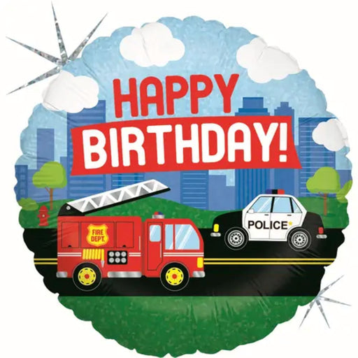 ABC18 Folienballon Einsatzfahrzeuge "Happy Birthday" Holografisch | 46 cm