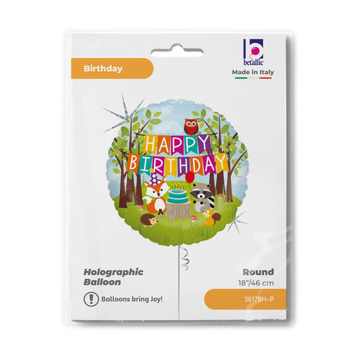 Vollständige Details anzeigenABC18 Folienballon "Woodland Happy Birthday" | Ø 46 cm