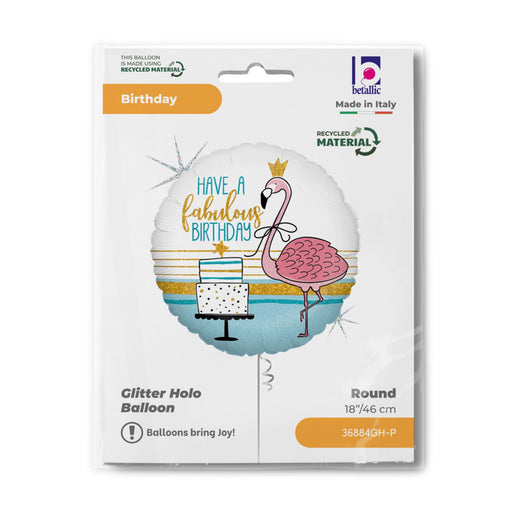 Vollständige Details anzeigenABC18 Folienballon Flamingo "Have a fabulous Birthday" Holografisch | 46 cm