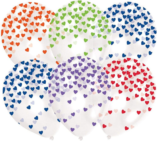 Vollständige Details anzeigen"Konfetti Herzen" Latex Luftballons 27,5 cm Transparent - 6 Stück Farblich Sortiert