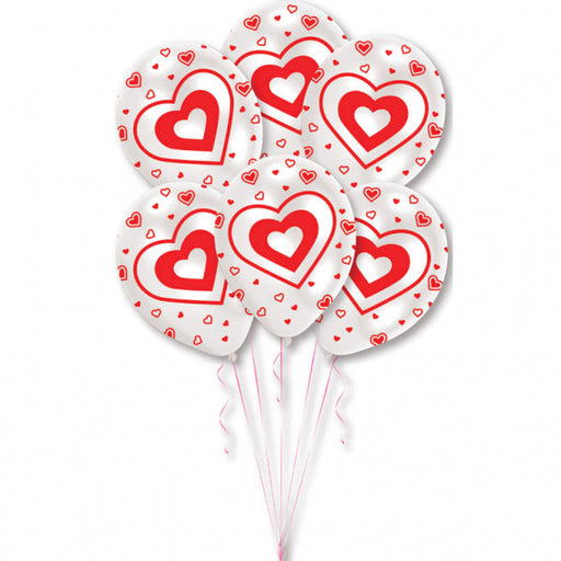 Vollständige Details anzeigen"Herzen" Runde Latexballons Luftballons 27,5 cm Globaldruck - 6 Stück Weiß Rot