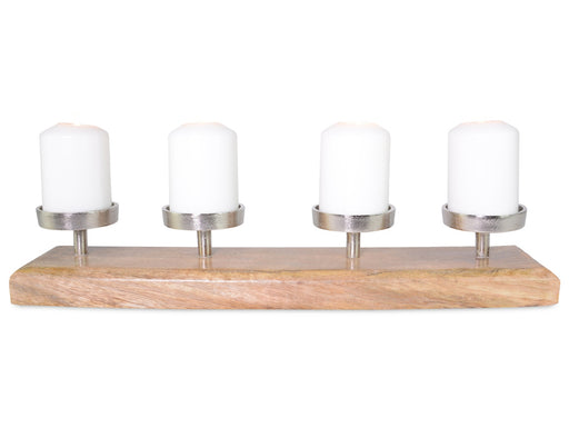 Vollständige Details anzeigenAdventsleuchter | 4 Kerzenhalter | Alu & Holz Silber | 38,5 x 7,5 x 4 cm | 11746