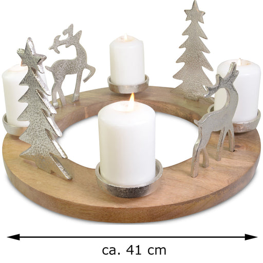 Vollständige Details anzeigenAdventskranz mit Hirschen und Christbäumen Ø 41 cm 24163 | Silber Metall und Holz