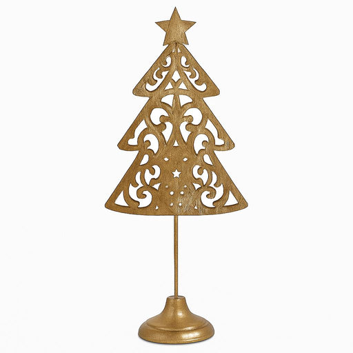 Vollständige Details anzeigenDeko Weihnachtsbaum Metall gold | 41 cm hoch | Mit Stern | 15549