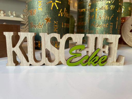 Vollständige Details anzeigenDeko Schriftzug "KuschelEcke" 29 x 8 cm Natur Grün | 19133 - Holz Dekoration