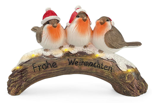Vollständige Details anzeigenDeko 3 Vögel auf Ast mit LED & Frohe Weihnachten | Braun | 20×7×12 cm | 70295