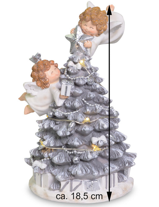 Dekofigur Beleuchteter Weihnachtsbaum mit Engeln 18,5 cm - 74849 | Silber