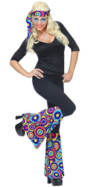 Möchten Sie Ihr Hippie, Rave, 70er, 80er Jahre Kostüm vervollständigen? Mit diesem auffälligen Set sind perfekt zu Fasching, Karneval oder der Mottoparty ausgestattet. Das 70er Jahre Set besteht aus einem Paar Stulpen und einem Stirnband. Stulpen und Stirnband sind jeweils aus einem Stoff mit bunten Kreisen gefertigt und die Stulpen besitzen einen schönen weiten Schlag. Einfach über die Jeanshose ziehen und los kann es gehen!