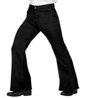 Nun kann der Show Auftritt im Retro Look der 70er und 80er Jahre kommen! Mit dieser Schlaghose aus einem tollen Material stehen Sie ganz sicher im Mittelpunkt jeder Hippie oder Disco Mottoparty! Die Herrenhose besitzt zwei Seitentaschen und durch den schwarzen Stoff sind Sie perfekt gekleidet.
