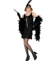 Das schwarze Charleston Kleid besticht durch seine elegante Kombination aus schwarzen Fransen. Der gerade Schnitt und die fließenden Materialien sorgen für eine perfekte Passform und höchsten Tragekomfort. Das schwarze Federstirnband ergänzt das Kleid ideal und setzt zusätzliche Akzente. Es ist aus einem elastischen Material gefertigt und passt sich angenehm an den Kopf an, während es zugleich für einen stilvollen Look sorgen. Es verleiht Ihrem Look eine romantische Note und hält Ihre Frisur den ganzen Abend lang in Form.