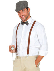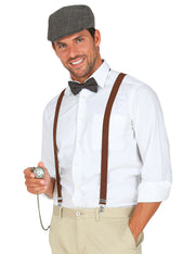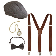 Sie möchten in die Zeit der wilden 20er Jahre zurückversetzt werden? Dieses Kostüm-Set wird es Ihnen ermöglichen. Das 4-teilige Set enthält eine graue Schiebermütze, braune Hosenträger, eine Fliege und eine goldene Taschenuhr. Mit diesem Kostüm-Set der 20er Jahre schlüpfen Sie in die Rolle eines gefährlichen Gangsters oder des reichen Gatsbys. Kombiniert mit einem weißen Hemd wickeln Sie mit diesem coolen 20er-Jahre-Outfit die Charleston-Ladys um den Finger.