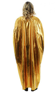 Der Umhang besitzt einen Stehkragen und ist aus einem tollen Metallic-Material hergestellt. Es gibt diesen auffällig glänzenden Umhang in gold oder silber. Der Umhang besitzt eine Länge von ca. 130 cm. Mit diesem Umhang machen machen Sie Ihr Außerirdischen Kostüm perfekt.