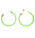 Die Creolen sind mit neonfarbenen Stoff umwickelt und leuchten dadurch besonders hell. Damit sind sie das perfekte Accessoire zu Ihrem Disco oder 80er 90er Jahre Kostüm!