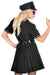 Das Oberteil des Damenkleides wird mit einem Reißverschluss geschlossen und besitzt zwei Brusttaschen. Der Rock ist in Falten gelegt und gibt dem kurzen Kleid eine elegante Note. Das schwarze Kleid überzeugt durch seine figurbetonte Passform und seine stilvollen Details. Die kurzen Ärmel und der V-Ausschnitt sorgen für einen femininen und zugleich professionellen Look. Der passende Gürtel ergänzt das Outfit ideal und betont die Taille, was dem Kostüm einen zusätzlichen Hauch von Authentizität verleiht. Der Gürtel ist verstellbar und passt sich individuell an Ihre Körperform an. Stilvolle Abzeichen und dekorative Knöpfe runden das Erscheinungsbild ab und sorgen für den perfekten Polizeilook.