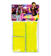 Schweißbänder Set 3-tlg. | Neon Gelb - 80er Jahre Disco Kostüm