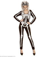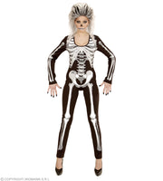 Skelett Girl Kostüm für Damen | Overall mit Skelettdruck - Schwarz