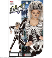 Dieses Kostüm verwandelt Sie in ein aufregendes Skelett Girl, das zu Halloween sein Unwesen treibt. Geliefert wird hier ein schwarzer Overall, der vorn mit einem tollen Skelettdruck versehene ist. Mit diesem Horror Kostüm erschrecken Sie jeden Partygast.