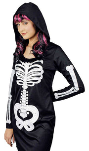 Skelett Kleid mit Kapuze für Damen - Geisterkostüm