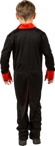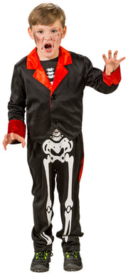 Verwandeln Sie Ihren kleinen Schatz an Halloween zu einem echten Horror Kind! Egal ob der Overall mit dem aufgedruckten Skelett einzeln getragen oder mit dem schwarz roten Frack abgerundet wird. In diesem Kinderkostüm macht Ihr Junge eine schrecklich schöne Figur!