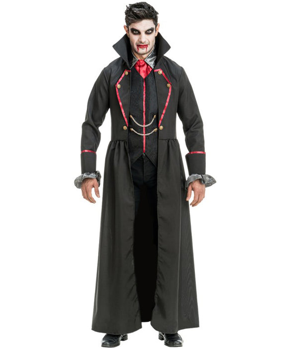 Lassen Sie die Nacht zum Leben erwachen mit diesem beeindruckenden Vampirkostüm. Die schwarze lange Jacke mit den roten Akzenten, die Weste und der Hemdkragen verleihen Ihrem Auftritt eine geheimnisvolle Note und machen Sie zu dem Vampir, der die Nacht mit Stil regiert. Kombinieren Sie das Kostüm mit Accessoires wie Kunstblut und einem Vampirgebiss und Sie werden zum Mittelpunkt auf Ihrer Geister oder Horror Mottoparty und im Fasching.