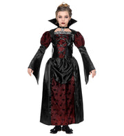 Vampirin Dracula Kinderkostüm - Langes Kleid mit Halsschmuck | Schwarz Rot