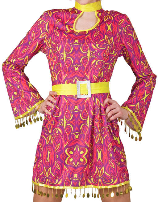 Vollständige Details anzeigenHippie Girl Patsy Kostüm für Damen - Pink Gelb