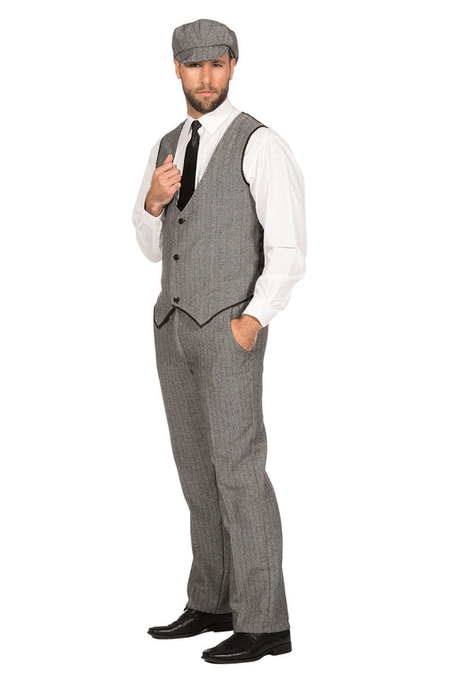 20er Jahre "Birmingham" Kostüm für Herren 2-tlg. | Grau - Weste und Mütze