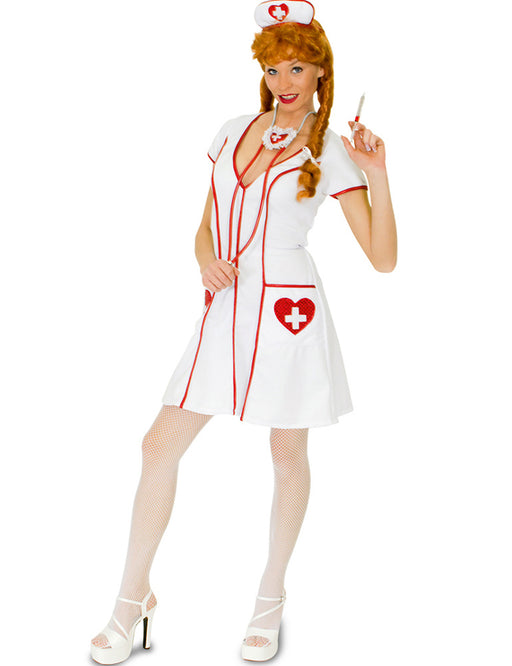 In diesem süßen kurzen Kleid und passendem Schwesternhäubchen dürfen Sie bestimmt jeden gern verarzten. Das Kleid ist sehr figurbetont, das Häubche...