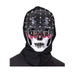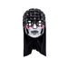 Die Maske zeigt ein halbverwestes, grau-blasses Gesicht mit eingefallenen Wangen, leeren Augenhöhlen und düsteren Schatten – perfekt, um den Look eines untoten Wesens zu unterstreichen. Das absolute Highlight: eine tiefschwarze Kapuze mit integrierten Nieten, die der Figur einen bedrohlich-düsteren, fast post-apokalyptischen Stil verleiht. Die Kapuze ist fest mit der Maske verbunden und sorgt so für einen fließenden Übergang zwischen Maske und Outfit.