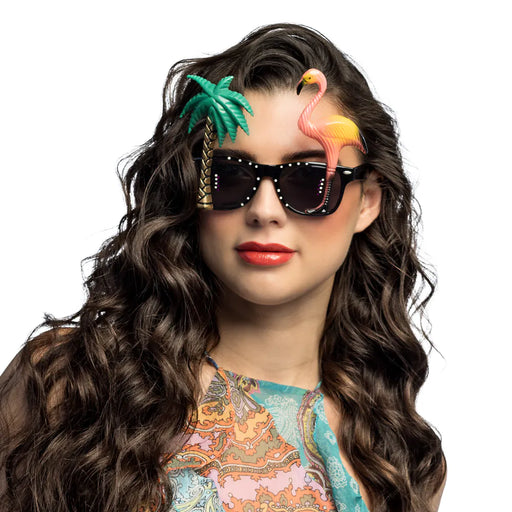 Vollständige Details anzeigen"Hawaii" Partybrille - Palme und Flamingo | Mehrfarbig
