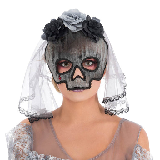 Vollständige Details anzeigenHalloween Maske Day of the Dead "Geisterbraut" | Grau Schwarz