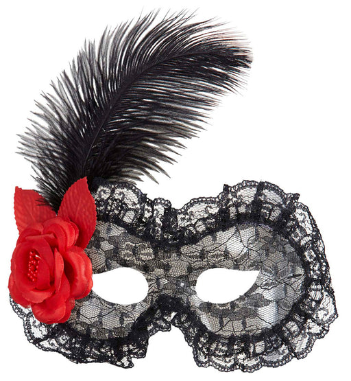 Sehr schöne Maske als Ergänzung zu Ihrem Faschingskostüm! Die Maske ist aus Spitzenmaterial hergestellt und mit einer Textil Rose und Feder verzie...