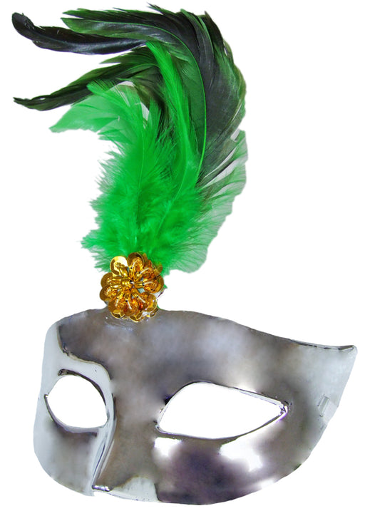 Vollständige Details anzeigenAugenmaske mit Federn - Silber Grün