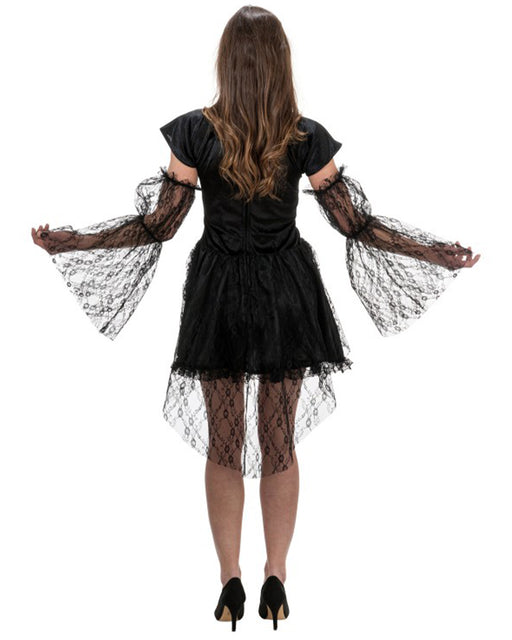 Das Vampirkostüm für Damen strahlt eine elegante und zugleich düstere Atmosphäre aus. Das schwarze, figurbetonte Kleid endet gut über den Knien und...