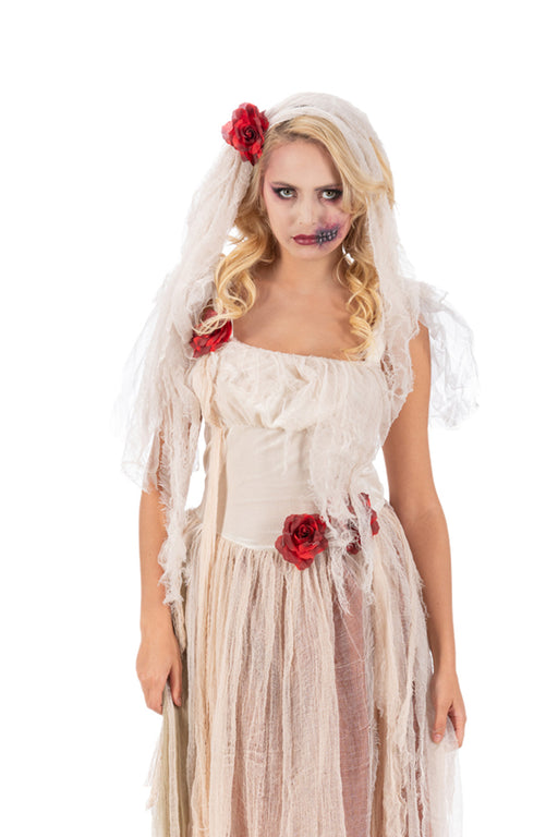 Vollständige Details anzeigenGeisterbraut Kostüm "Cristina" für Damen mit Schleier | Creme Rot
