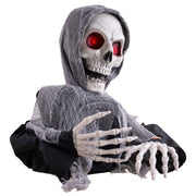 Wenn sich der Sensenmann „Der Tod“ erhebt, gefriert jedem das Blut in den Adern. Mit seinem bedrohlich grinsenden Totenschädel, den glühend roten Augen, die wie zwei brennende Kohlen durch die Dunkelheit dringen, und seinen knochigen Händen, die sich unheilvoll nach vorne recken, scheint er direkt aus den Tiefen der Hölle gekommen zu sein. Aktiviert, erwacht diese Schreckensgestalt zum Leben: Er bewegt sich unheimlich, seine Augen erstrahlen in einem teuflischen Rot, und er stößt furchterregende, geisterhafte Geräusche aus, die jeden Besucher in die Flucht schlagen.