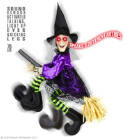 Sprechende Hexe mit strampelnden Beinen und Leuchtaugen | Halloween Dekoration