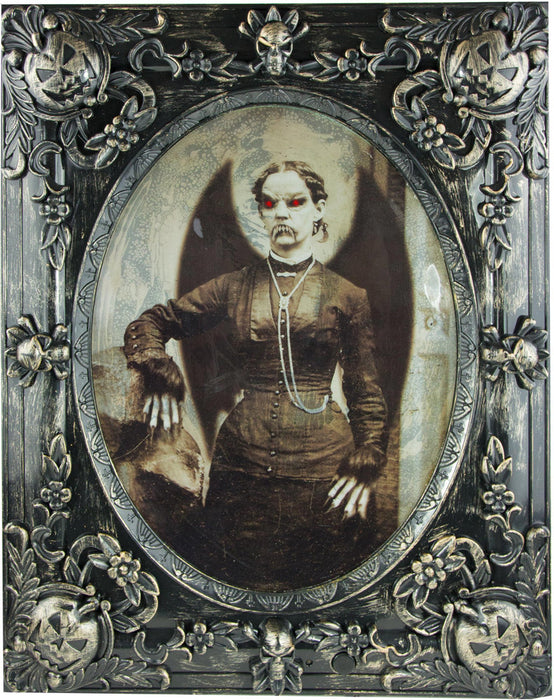 Halloween Party Dekoration | Gruseliges Effektbild Wandbild mit Leuchtaugen und Sound | Damen Portr