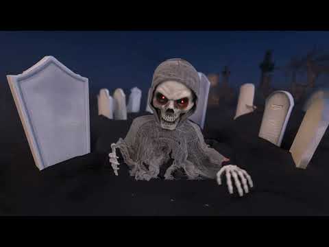 Wenn sich der Sensenmann „Der Tod“ erhebt, gefriert jedem das Blut in den Adern. Mit seinem bedrohlich grinsenden Totenschädel, den glühend roten Augen, die wie zwei brennende Kohlen durch die Dunkelheit dringen, und seinen knochigen Händen, die sich unheilvoll nach vorne recken, scheint er direkt aus den Tiefen der Hölle gekommen zu sein. Aktiviert, erwacht diese Schreckensgestalt zum Leben: Er bewegt sich unheimlich, seine Augen erstrahlen in einem teuflischen Rot, und er stößt furchterregende, geisterhafte Geräusche aus, die jeden Besucher in die Flucht schlagen.
