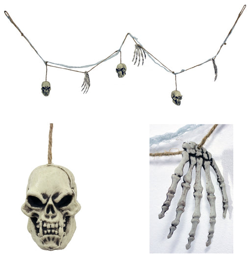 XXL Knochen und Totenkopf Girlande - 180 cm | Gruselige Party Halloween Dekoration